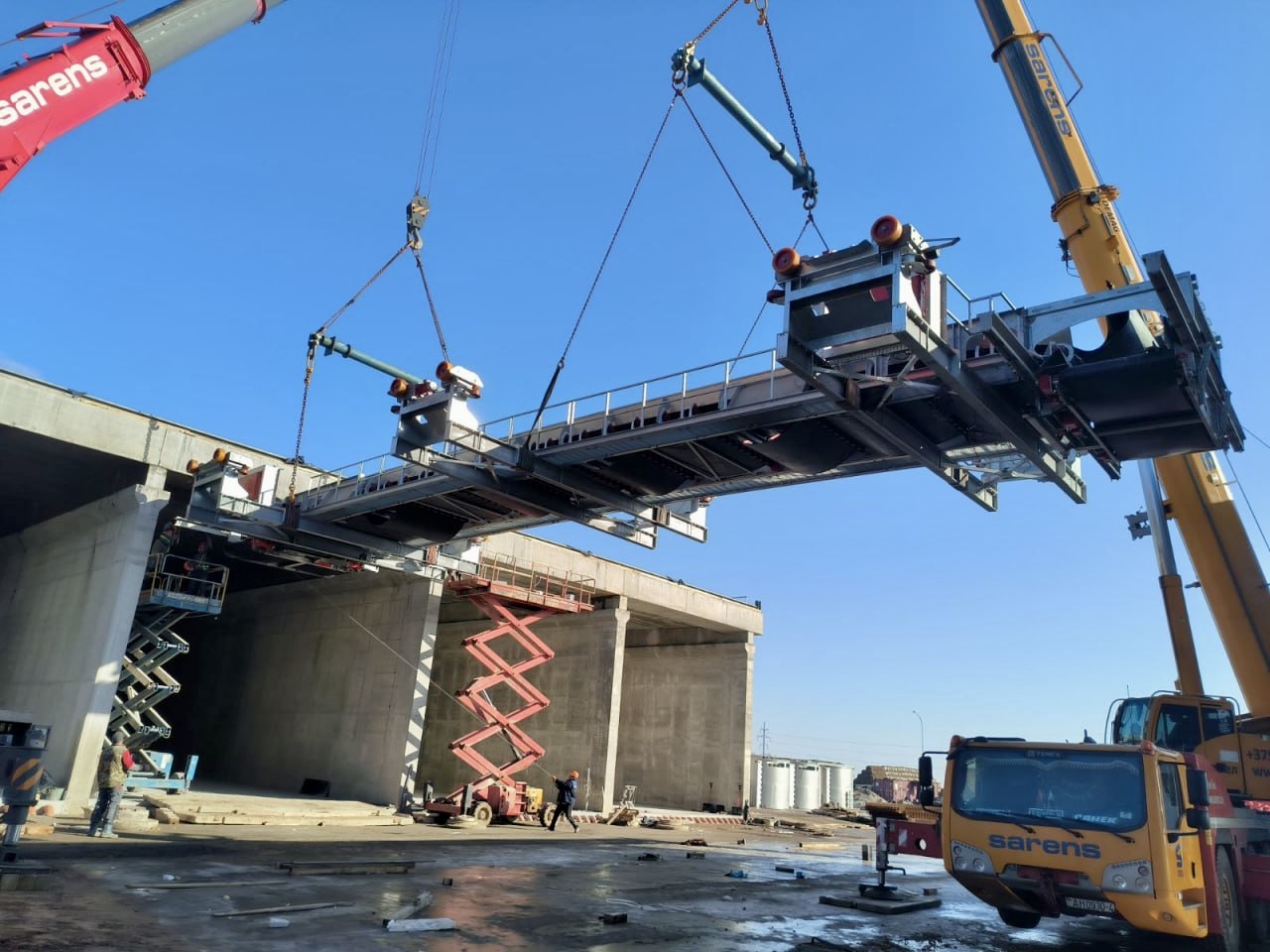 Постоянно привлекаем в аренду краны компании Саренс Бел на строительстве мостов по всей Беларуси для монтаже железо-бетонных балок а так же их перевозки на площадки с завода. Радует что компании постоянно обновляет парк своей техники (начинали работы когда у них был кран 130 тонн), а сейчас они могут предложить широкий выбор кранов грузоподъемности от 30 тонн и до 300 тонн. Всегда профессиональные операторы которые знают свою работу и договороспособные сотрудники компании